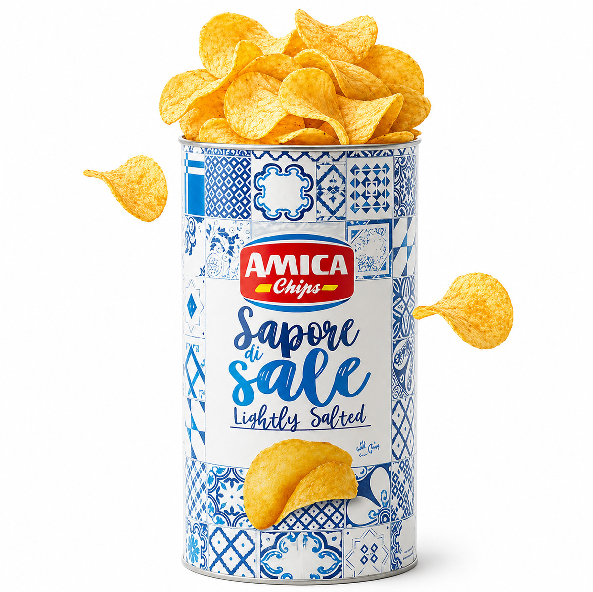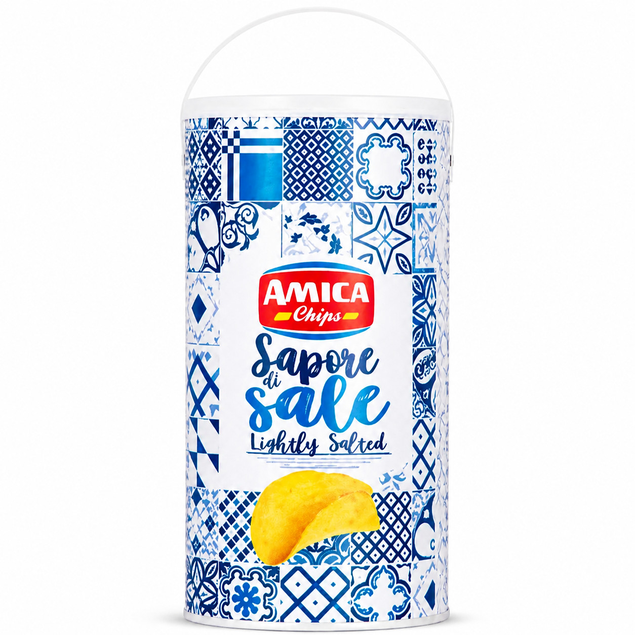 Величезна банка картопляних чипсів від італійського бренду Amica Chips — ідеальний вибір для справжніх гурманів та великих компаній. Чипси нарізані товстими гребінцями, обсмажені у високоолеїновій соняшниковій олії при низькій температурі, що робить їх хрусткими, ароматними та зменшує вміст жирів на ~30 % порівняно з класичними варіантами