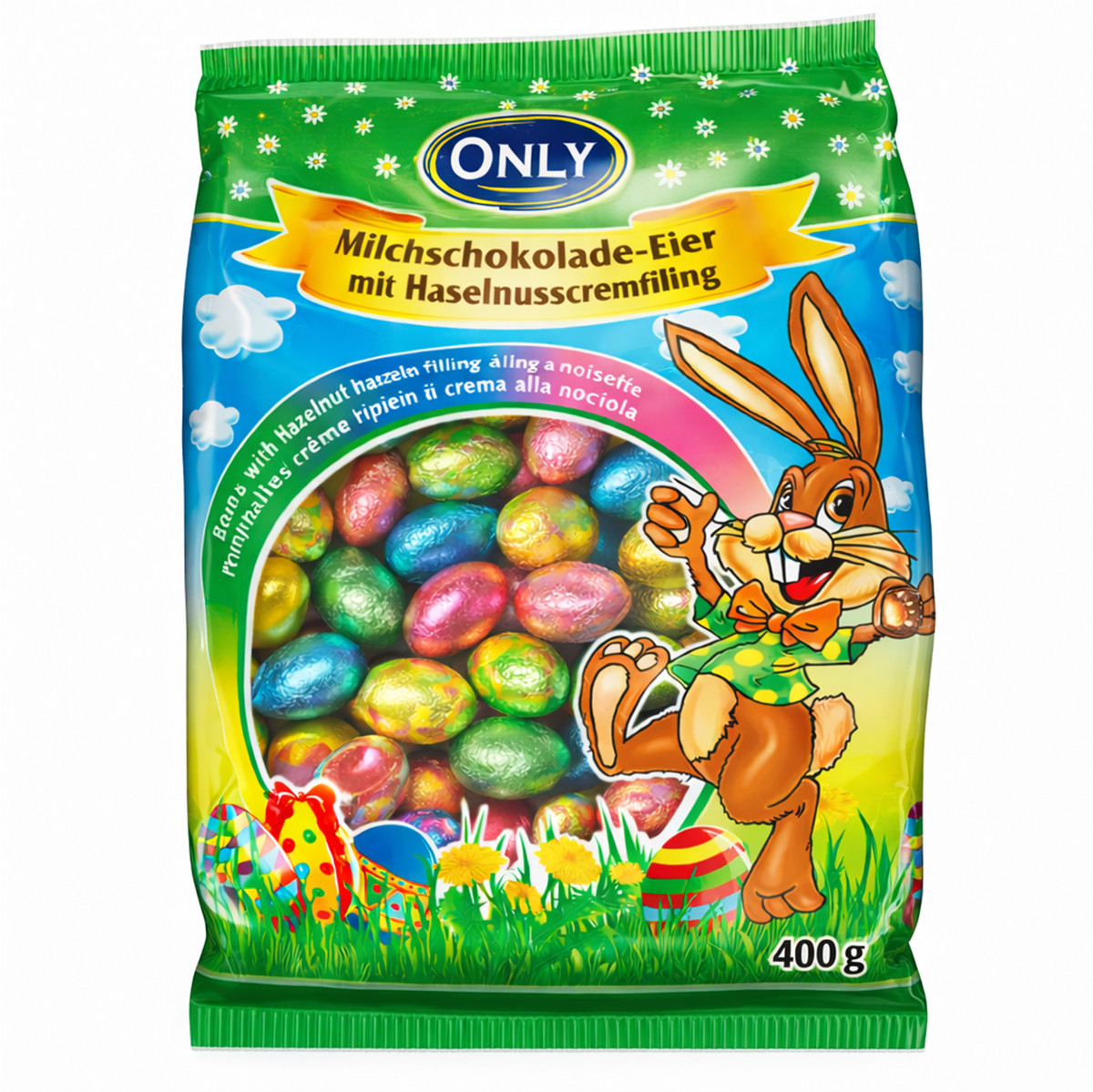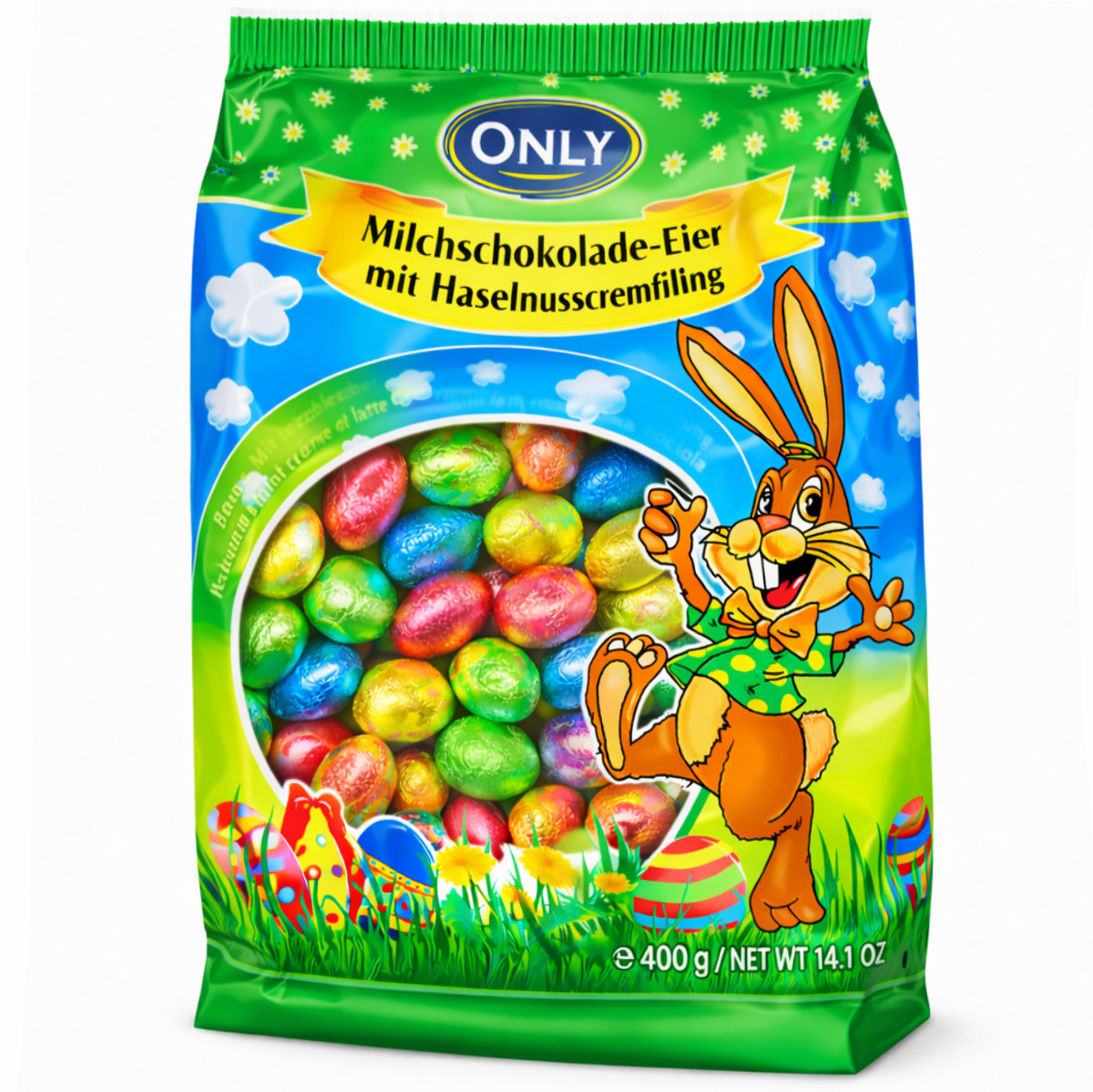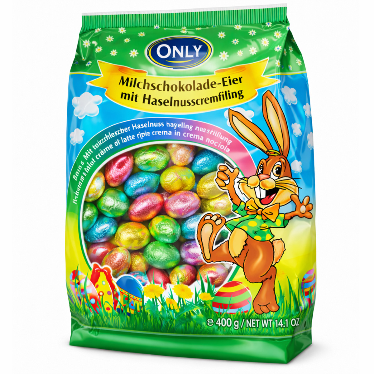 Завдяки зручному формату маленькі шоколадні яйця ідеально підходять для святкового столу, дитячих солодких наборів або просто як улюблений десерт для всієї родини. Начинка з горіховими нотками надає цукеркам особливо м’якого та насиченого смаку.