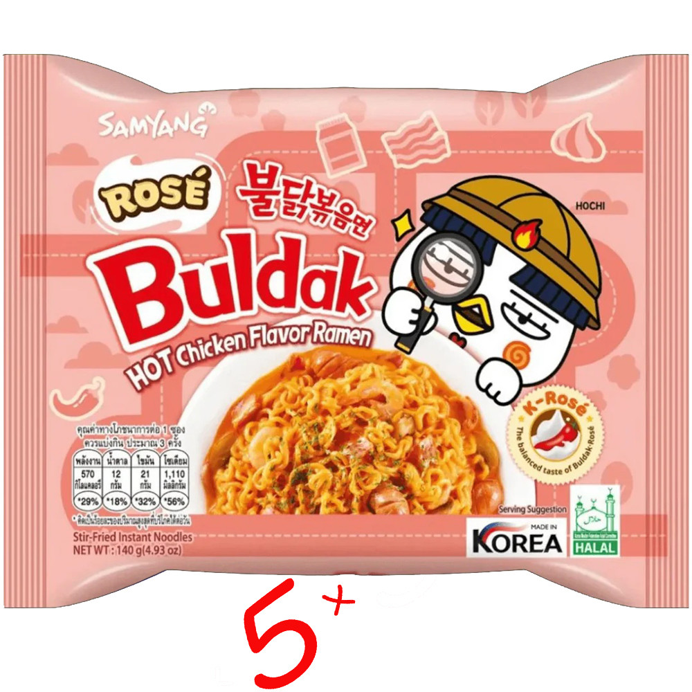 Samyang Buldak Rose — це популярний корейський рамен із фірмовою “вогняною” гостротою Buldak у поєднанні з м’яким вершковим профілем та соусом “роуз” (ніжний, кремово-томатний відтінок смаку).