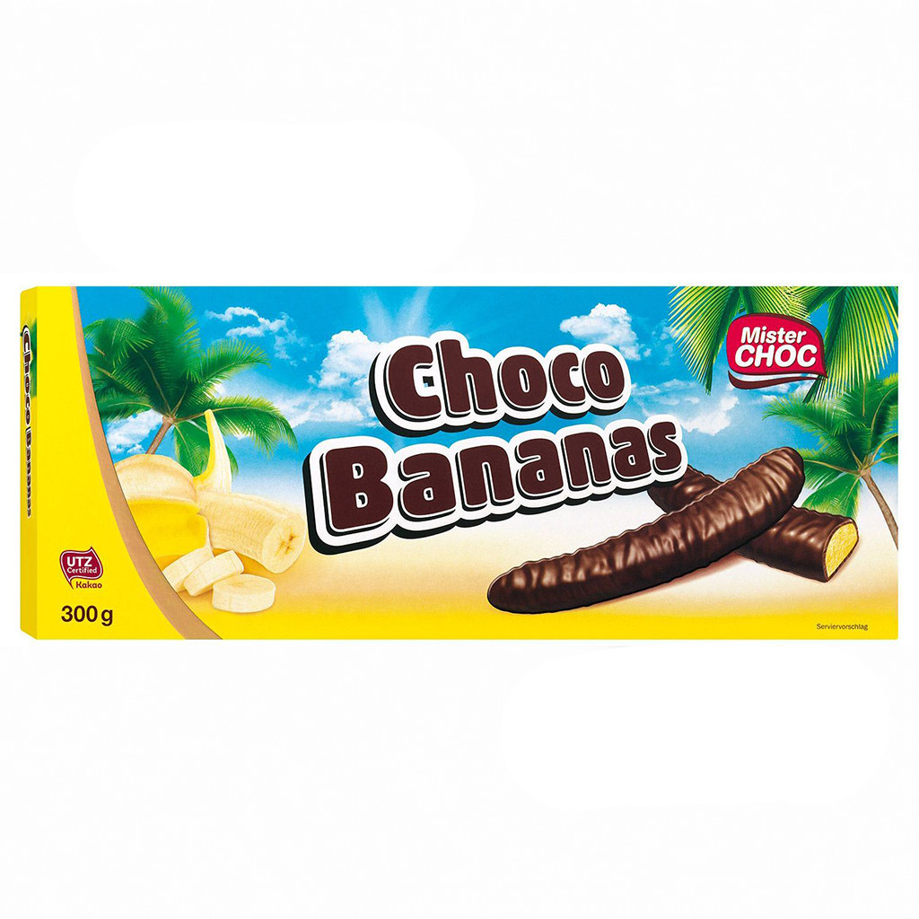 Цукерки Бананове Суфле в Шоколаді Mister Choc Choco Bananas 300 г — це ніжні солодощі з м’яким банановим суфле, вкритим шаром смачного шоколаду.
