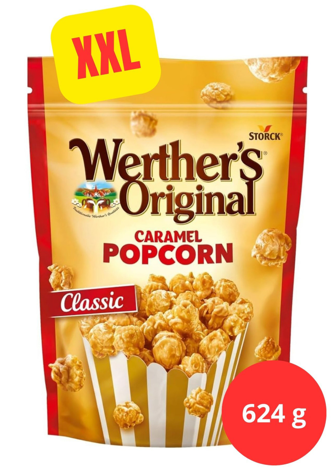 Попкорн карамельний Storck Werther’s Original Caramel Popcorn 624 г — це смачний повітряний попкорн, щедро вкритий ніжною карамеллю з фірмовим вершковим смаком Werther’s Original. Кожна кулька має апетитну хрустку текстуру та насичений солодкий смак, який чудово підходить для сімейного перегляду фільмів, святкового столу або великої компанії.