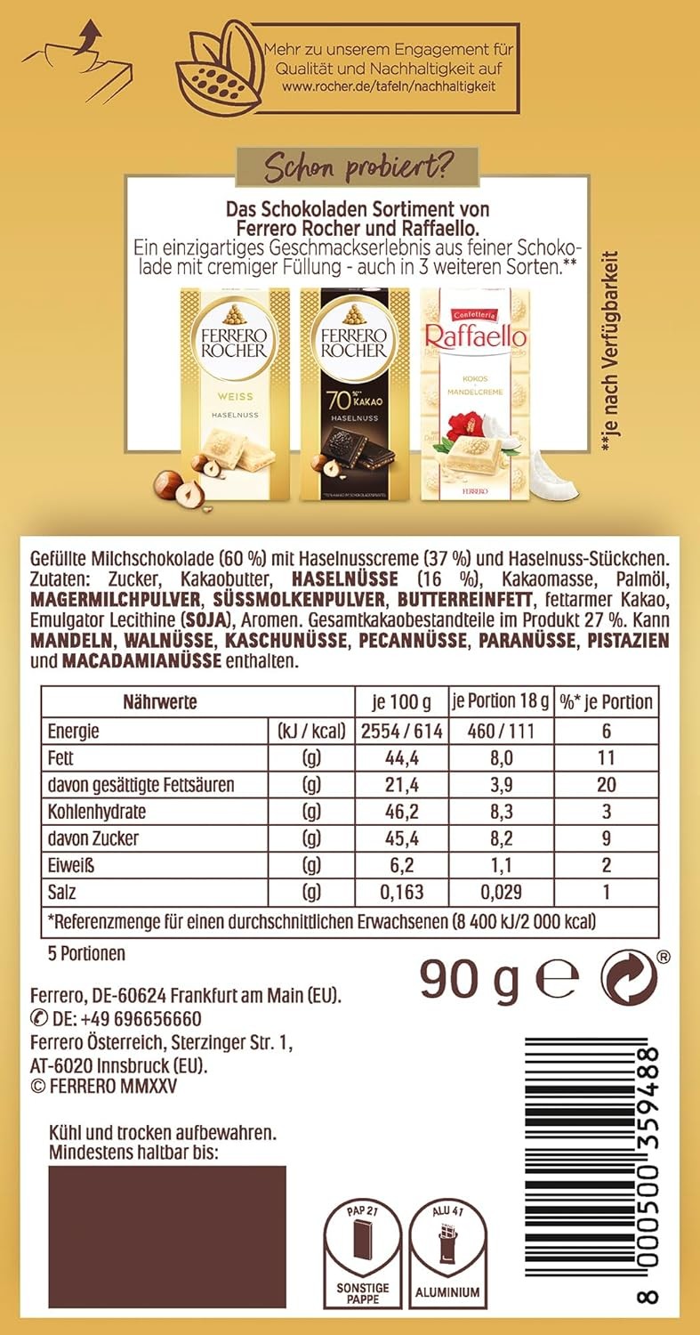 Шоколад Молочний Ferrero Rocher Original Haselnuss 90 г