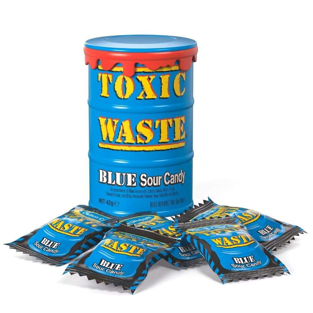 Оригінальна упаковка у вигляді банки для токсичних відходів із мега кислими Цукерками всередині.